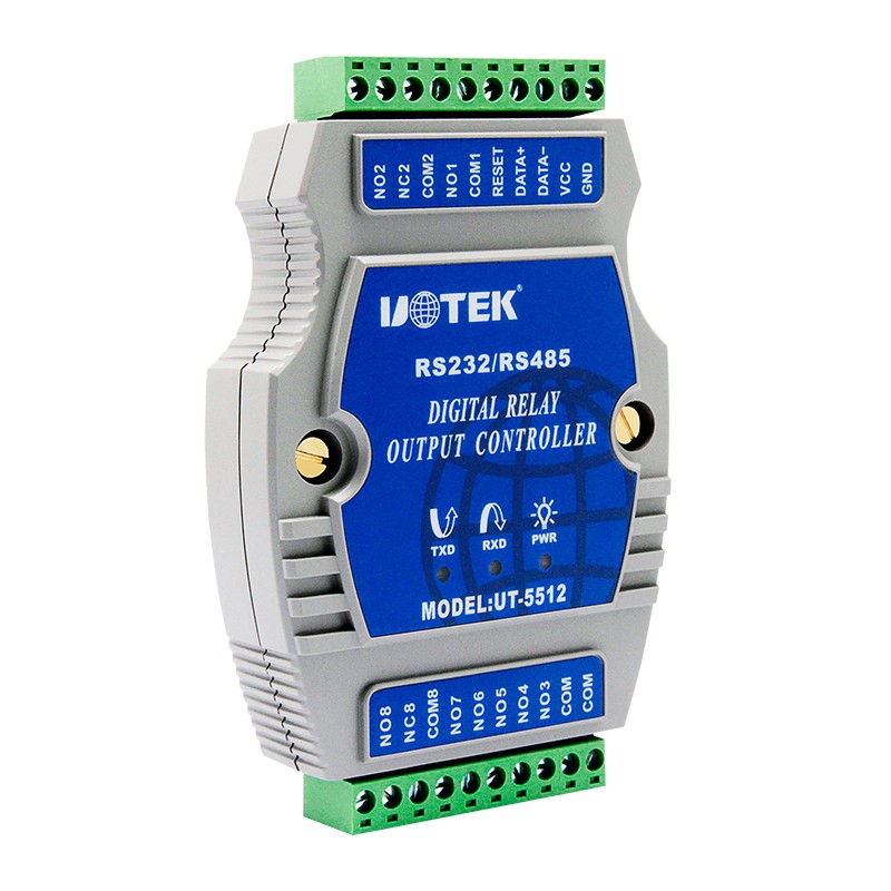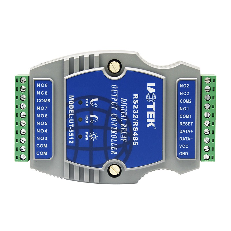 UT-5512是8通道繼電器輸出控制器,采用外置的RS-232/485光電隔離通信接口,非常容易地使用程序來(lái)控制那些輸出口的功能,再加上簡(jiǎn)單的驅(qū)動(dòng)線(xiàn)路來(lái)驅(qū)動(dòng)外部的設(shè)備(例如: 氣動(dòng)元件,外部繼電器開(kāi)關(guān),電眼狀態(tài),遙控接口儀器,模數(shù)數(shù)模轉(zhuǎn)換器,步進(jìn)電機(jī)控制等等)。